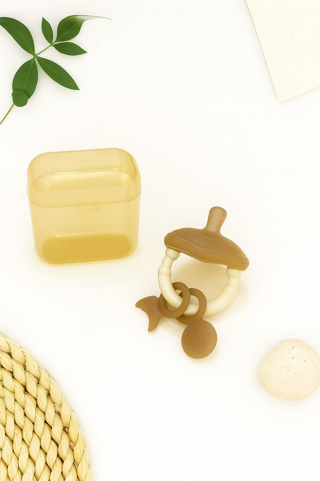 Premium Pacifier Silicone Teether with toy rings (Beige-white)